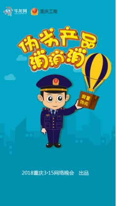 2018年重慶3·15網(wǎng)絡(luò)晚會(huì)由中共重慶市委宣傳部、中共重慶市委網(wǎng)信辦、重慶市精神文明建設(shè)委員會(huì)辦公室、重慶市工商行政管理局和重慶市消費(fèi)者權(quán)益保護(hù)委員會(huì)主辦,重慶華龍網(wǎng)集團(tuán)承辦,晚會(huì)主題為“共建放心消費(fèi) 共享美好生活”。
