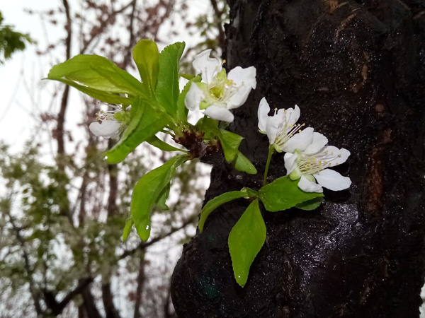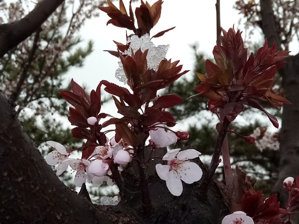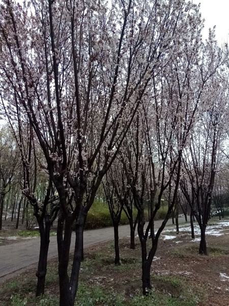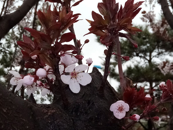 紫葉李開白盛雪