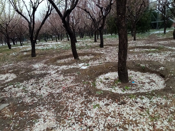 林間樹下堆成冢,不是雪花是杏花。
