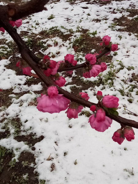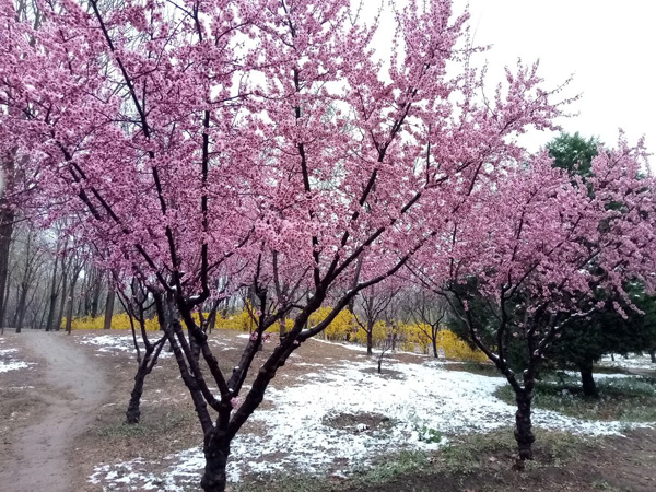 榆葉梅花欲襯雪
