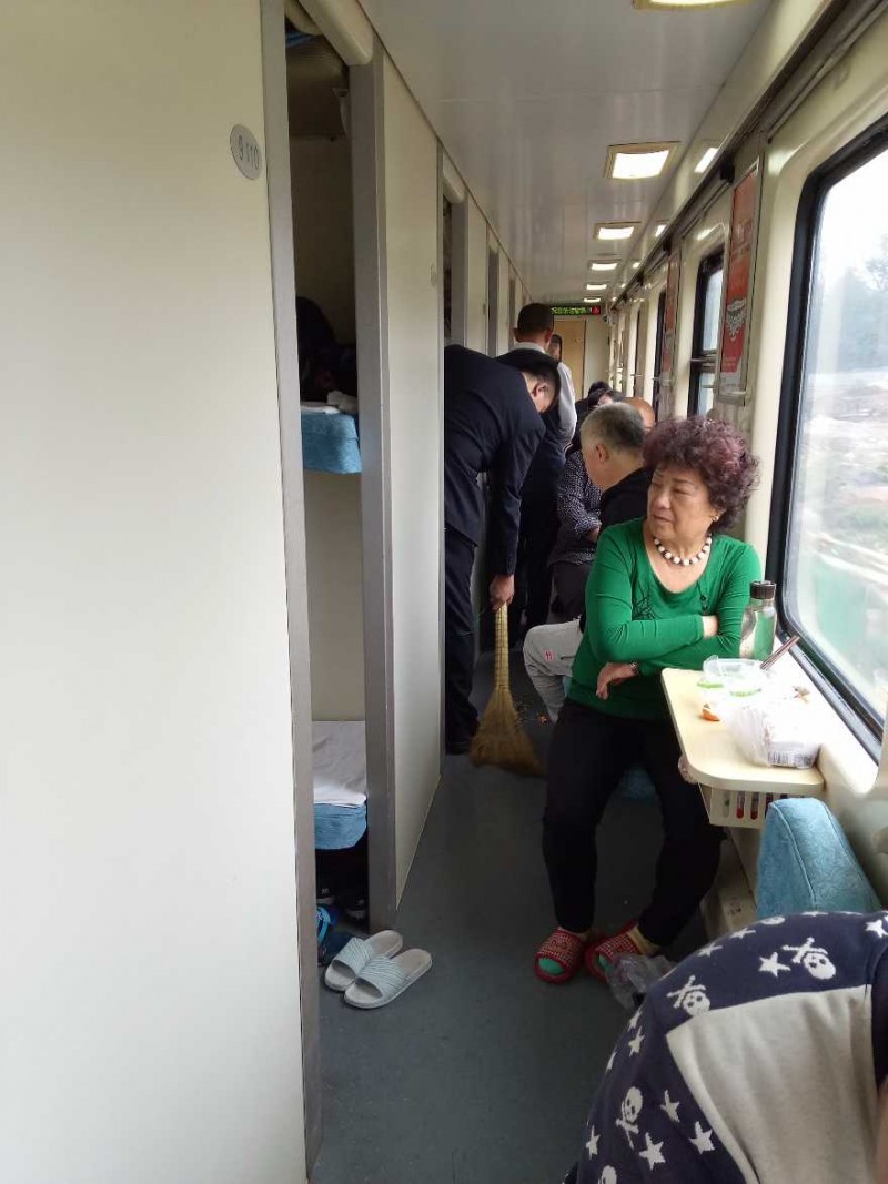 9號車廂工作人員小心翼翼清理地面衛(wèi)生。