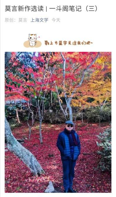 2019年,《上海文學(xué)》曾發(fā)表莫言的《一斗閣筆記》與《一斗閣筆記(二)》。