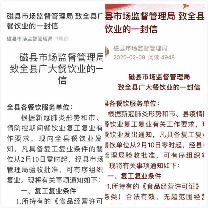 一、擴大宣傳,加強防控責任意識。通過局微信公眾號、美篇等開展宣傳,發布“致全縣廣大餐飲業的一封信”和印制宣傳彩頁張貼,告知廣大餐飲經營者疫情防控期間餐飲業復工復業條件、辦理程序、申請材料及相關要求。要求復工經營戶做到“四個必須”,即必須履行報備手續,必須嚴格人員排摸,必須強化內部管理,必須增強防護意識。