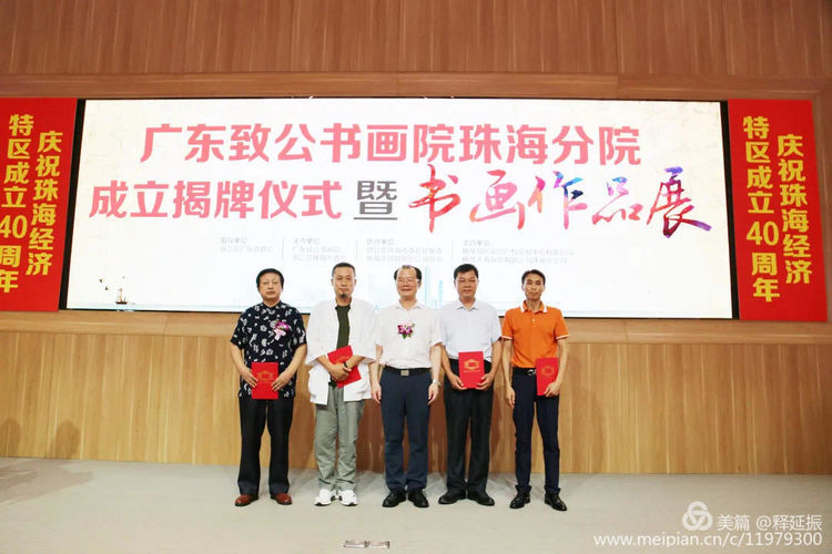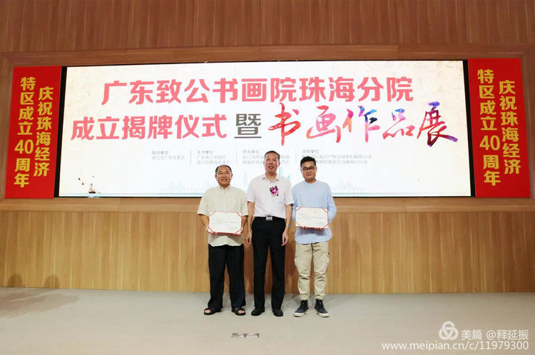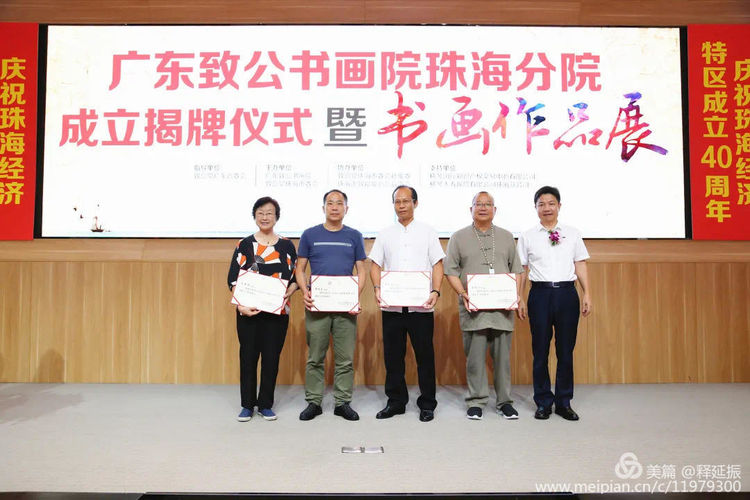 為了紀念中國致公黨成立95周年,慶祝珠海經濟特區成立40周年,8月3日,致公黨珠海市委會舉辦廣東致公書畫院珠海分院成立揭牌儀式暨書畫作品展。致公黨廣東省委會副主委李秉記、專職副主委黃小彪,珠海市政協副主席、民盟珠海市委會主委彭洪,中共珠海市委統戰部常務副部長李奕根,致公黨珠海市委會主委呂簡承出席活動。