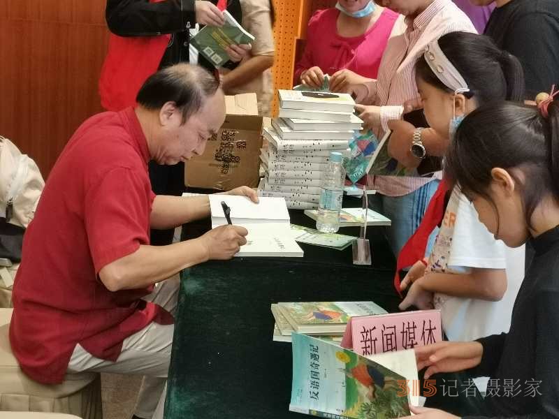 作家網副總編凌鼎年在長三角作文大賽頒獎會現場為其新出版的青少年小說讀本《反語國奇遇記》給獲獎學生簽名(2020年9月19日)