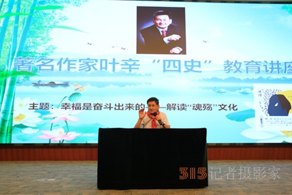 頒獎會上,分別由張建華、劉翔、李蓉蓉、王德才等宣讀了獲特等獎與一二三等獎的學生獲獎名單,并由葉辛、龔振飛、張建華、褚康齡、胡曾榮、吳紀椿、賀宇珍、傅建清、任哥舒等嘉賓為獲獎者頒獎,并合影留念。 最后,著名作家葉辛做了“四史”講座,主題:幸福是奮斗出來了,以解讀“魂殤”文化,并為他的新書《魂殤》當場為讀者簽名。