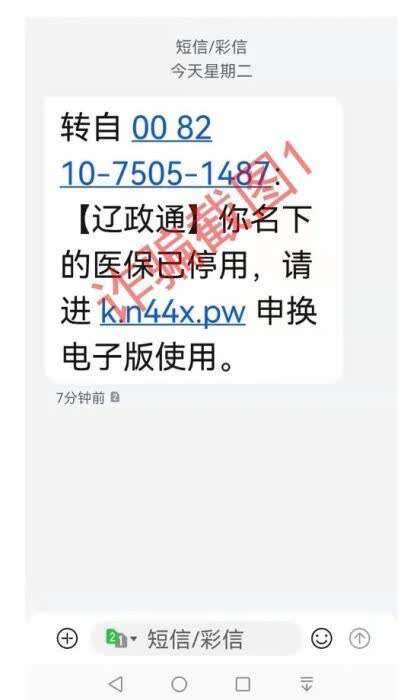 近日,遼寧省醫療保障局官方微信發布消息稱,遼寧省醫保局接到部分群眾反映,有不法分子向該省參保群眾推送詐騙短信,相關內容為“【遼政通】你名下的醫保已停用,請進******申換電子版使用”,內含虛假鏈接(實為木馬病毒鏈接),誘導受害人點擊該鏈接。