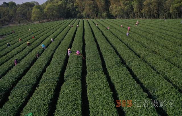2022年3月14日,隨著氣溫回升,各地春茶陸續(xù)開采。這是位于江西省上饒經(jīng)開區(qū)董團(tuán)鄉(xiāng)境內(nèi)的遠(yuǎn)泉茶業(yè)有限公司茶葉基地,茶農(nóng)們抓緊時(shí)間采摘春茶,忙碌的身影猶如律動(dòng)的音符,奏響春天的樂(lè)章。(艾世民攝影報(bào)道)