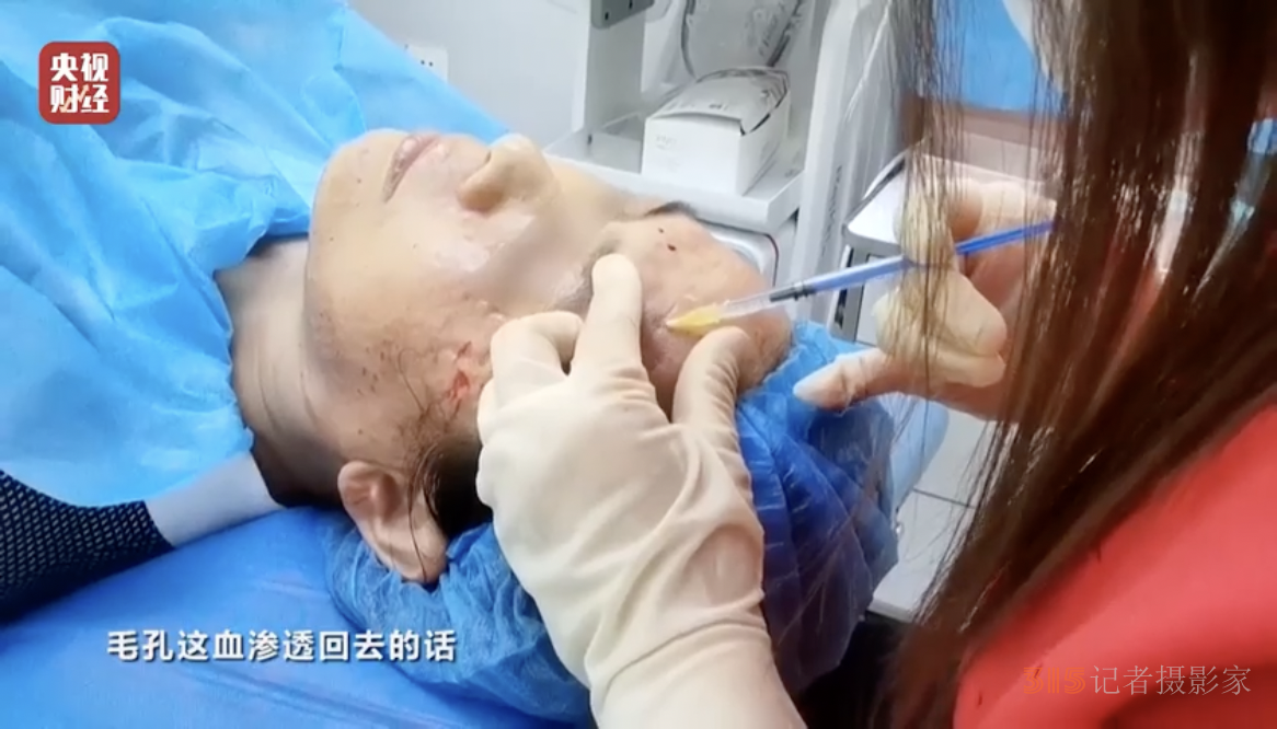 旭日美業商貿有限公司工作人員:淺皮層出的血,最好給揉回去,毛孔這血滲透回去的話,就相當于我們做了一個自身血液回輸。然后面膜不要擦直接蓋上,一會兒把面膜去了,小包包幾乎就沒了。