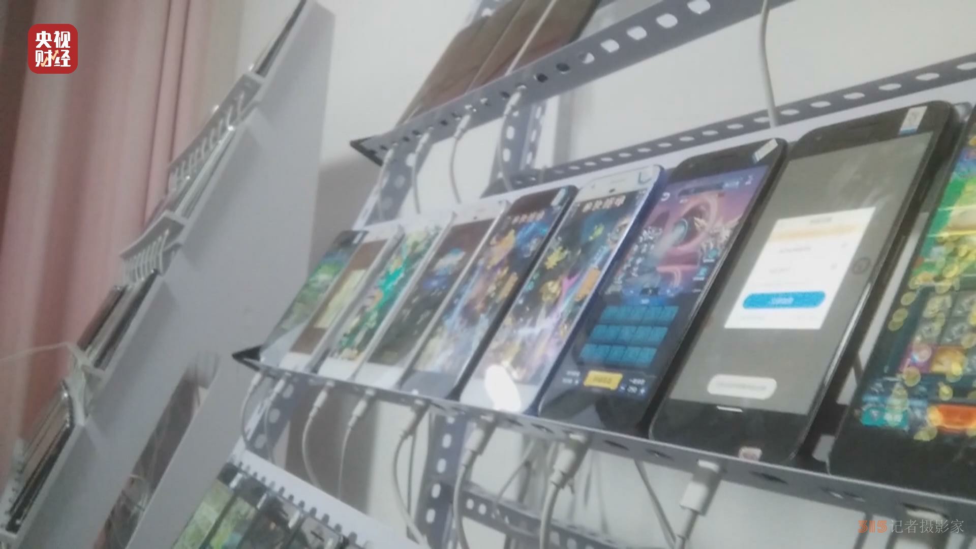在該公司一個數十平方米的房間,架子上也同樣擺滿了手機,大約有四五百臺,屏幕顯示多款游戲正在如火如荼地進行著,有糖果果聯盟、貝貝捕魚、玩棋盤、斗地主等等。