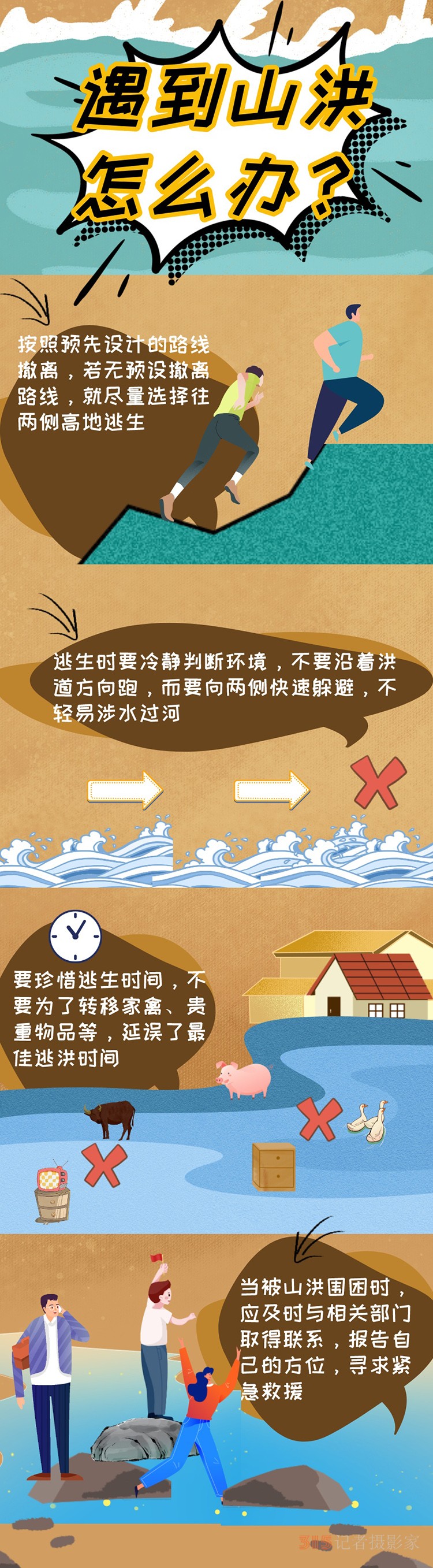 當前,長江、黃河、淮河、珠江等七大江河流域已全面進入主汛期,汛期暴雨局地性、突發性強,雨量大、危害重,極易引發山洪、山體滑坡、泥石流等自然災害。如果突遇這些自然災害,如何避險自救?一起來學習。