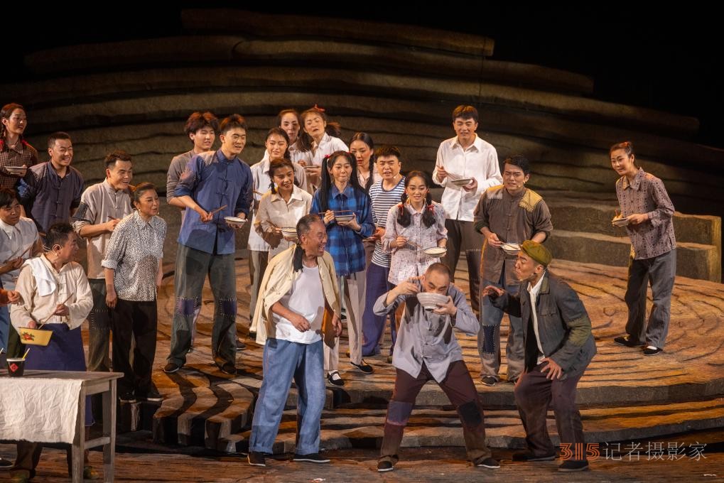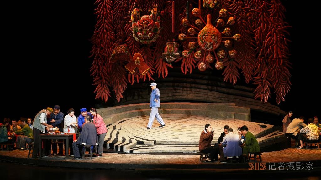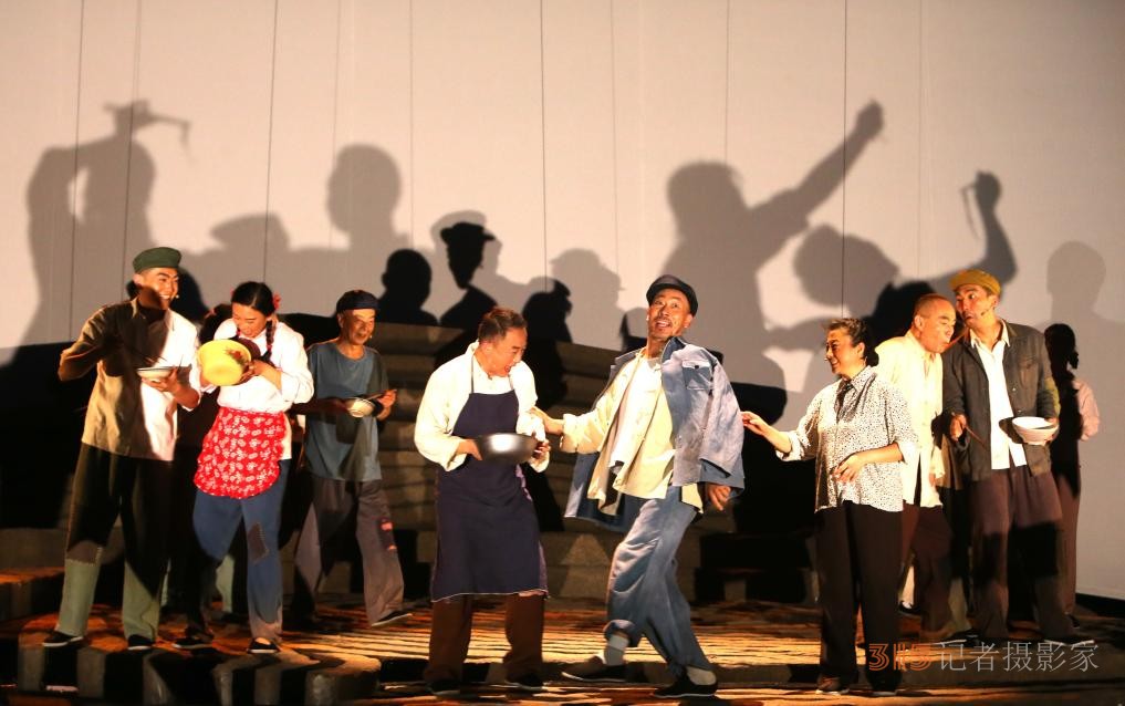 2個(gè)多小時(shí)的表演,舞臺(tái)上沒(méi)有高科技的技術(shù)加持,卻飽蘸著農(nóng)民特有的泥土氣;沒(méi)有神秘莫測(cè)的故事線,卻將三代人傳承面皮手藝的故事娓娓道來(lái);沒(méi)有驚天動(dòng)地的人物和道具,但一個(gè)村長(zhǎng)、一口棺材、一碗面皮就能串起整個(gè)演出……