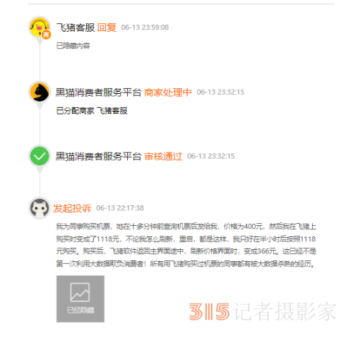 “考慮到對消費者體驗的影響,飛豬將為消費者提供50元體驗金。”該負責人說。