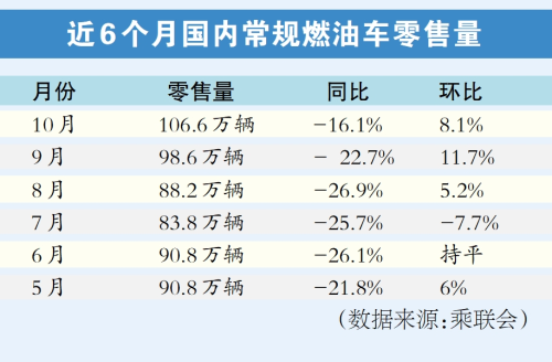 乘聯(lián)分會發(fā)布的數(shù)據(jù)顯示,今年10月常規(guī)燃油車零售106.6萬輛,環(huán)比增長8.1%。乘聯(lián)會秘書長崔東樹表示:“燃油車零售回暖是支撐車市整體向上的基礎之一,‘以舊換新’政策釋放的換購需求,更在一定程度上帶動燃油車銷量的增長?!敝档米⒁獾氖?,2025年補貼政策或仍將持續(xù),這對油車也是很好的提振銷量的機會。