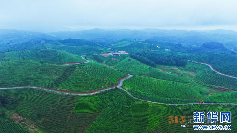 航拍鏡頭下的景洪大渡崗鄉(xiāng)萬畝茶園。(10月11日)新華網(wǎng) 趙普凡攝