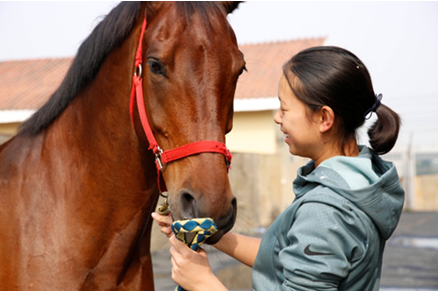 除了正在馬場上訓練的盛裝舞步馬匹和騎手,其他馬術俱樂部的馬匹和騎手也都在精心準備,騎手們細心的為賽馬清洗、擦馬鞍、喂食、梳理毛發,為比賽做好所有準備。